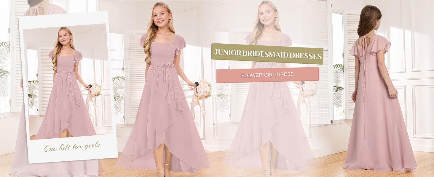 Junior Bridesmaid Dresses Chiffon Halter Floor Length Flower Girl Dresses for Wedding